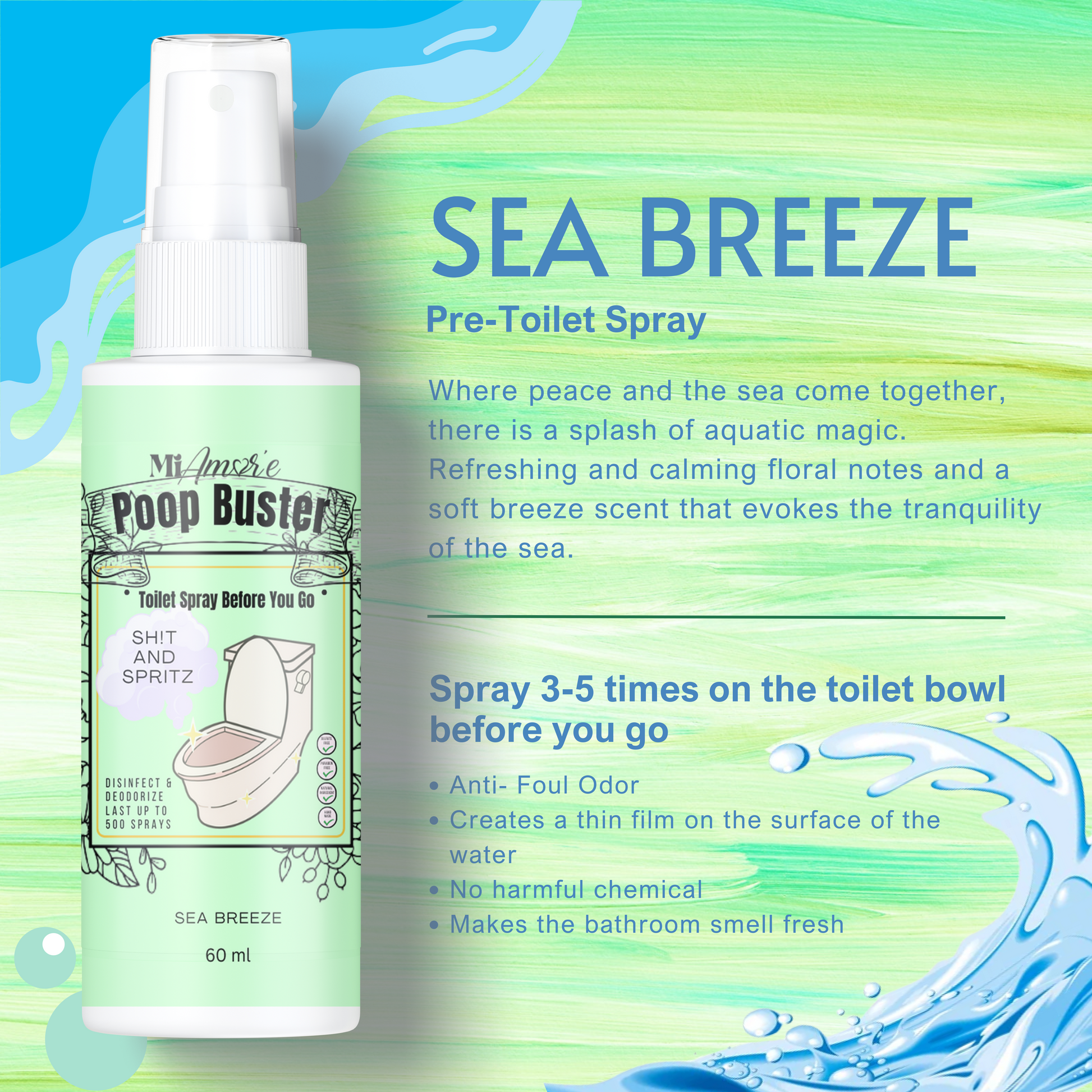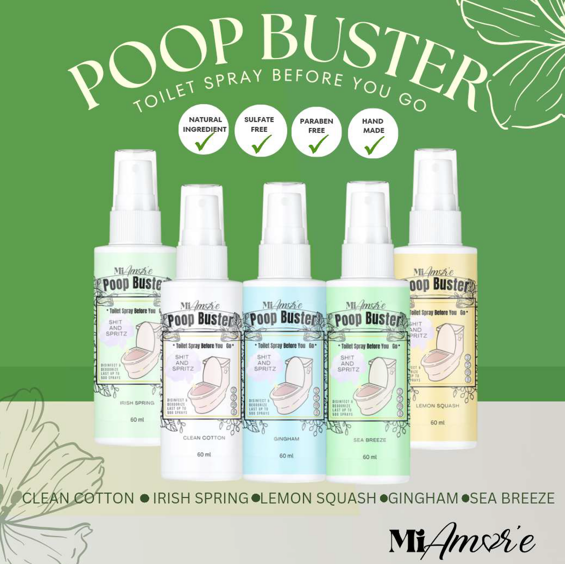 Mi Amore POOP BUSTER! Toilet Spray, Odor Eliminator, POOP spray before yo go!